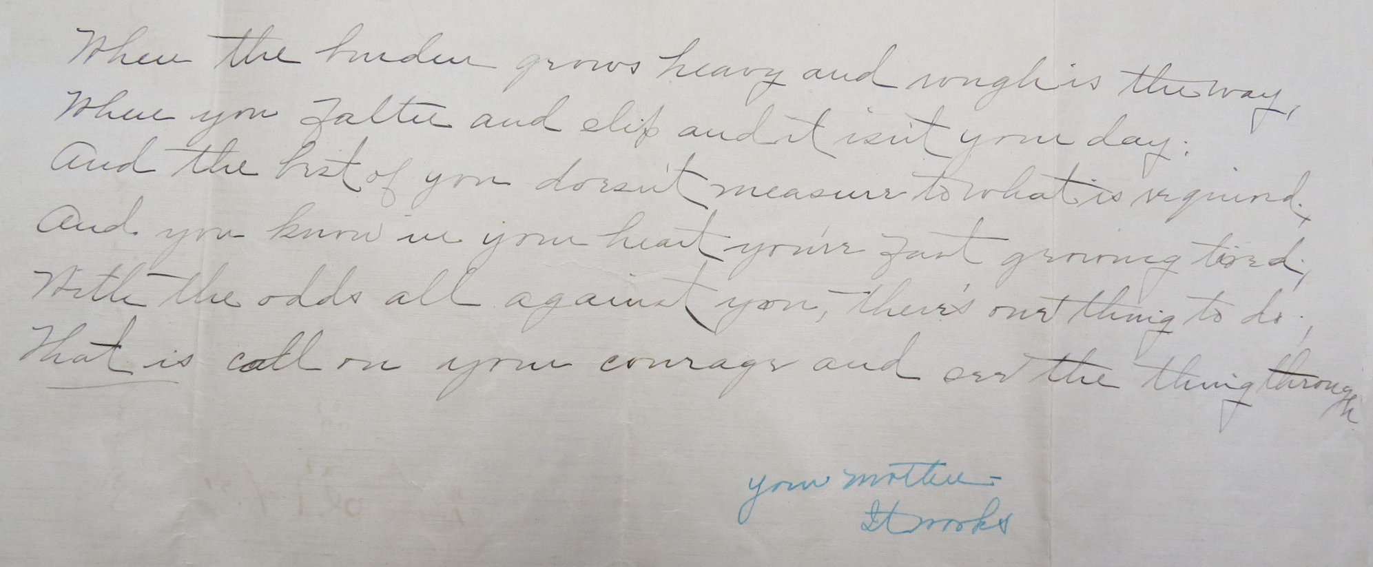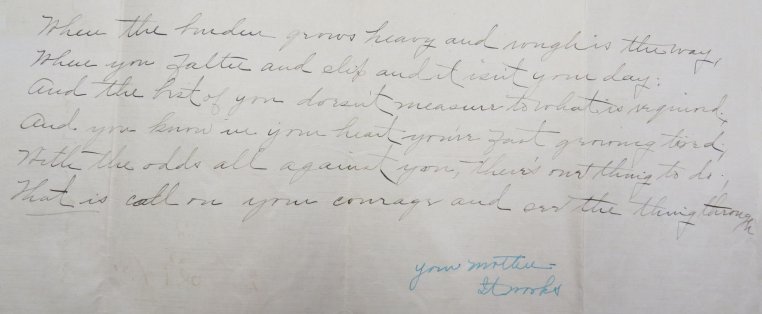 Daniel Ancestors 20 Tuesday Jun 2017 Original size at 1993 × 823 ≈ Comments Off on Bobbie_to_Ted_burden_grows_heavy_crop A portion of a poem sent by Bobbie to son Ted Applegate. Bobbie signed this in her traditional green ink, ‘Your Mother – it works”