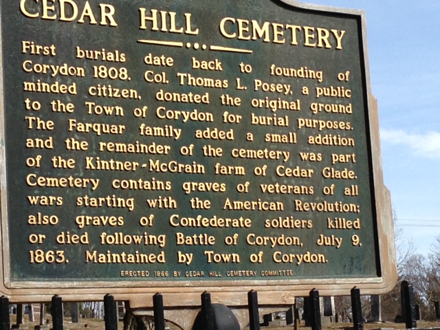 Daniel Ancestors 06 Monday Oct 2014 Original size at 640 × 480 ≈ Comments Off on CedarHill_sign Cedar Hill Cemetery, Corydon, Indiana