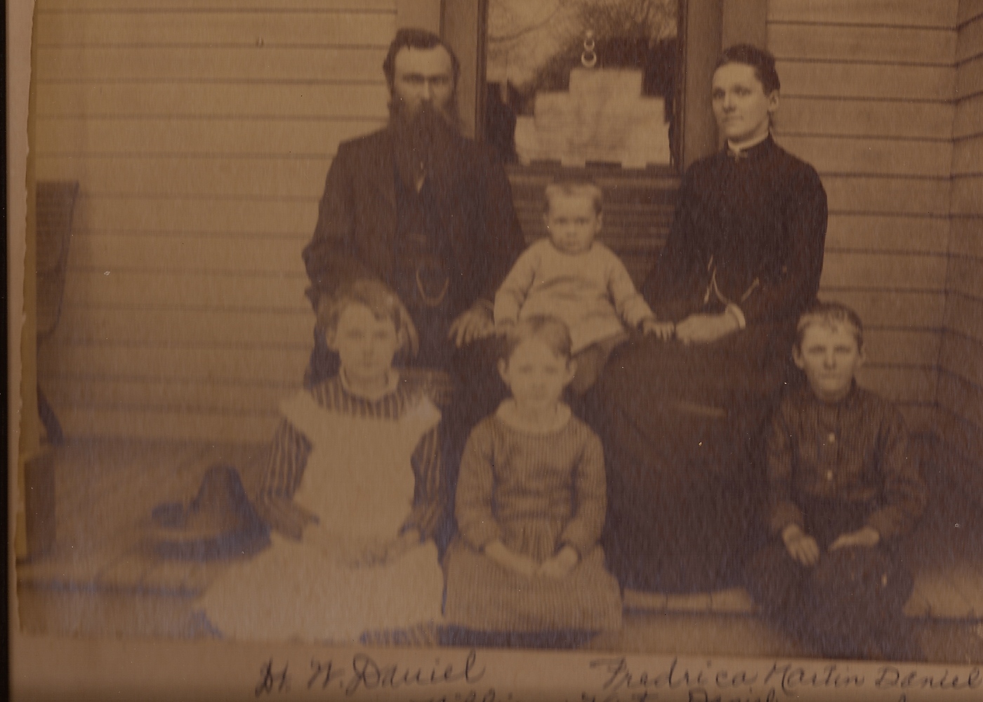 Daniel Ancestors 06 Monday Oct 2014 Original size at 1400 × 1000 ≈ Comments Off on Dr.WmDaniel_family_1886 Dr. Wm Daniel, baby Willie, Fredrica, Grace, Kitty, Fred, 1886