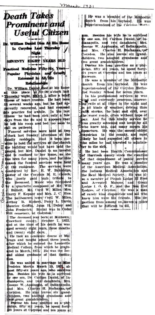 Daniel Ancestors 06 Monday Oct 2014 Original size at 1384 × 2820 ≈ Comments Off on Dr.WmDaniel_obit_3 Dr. Wm Daniel obit (1852-1931)