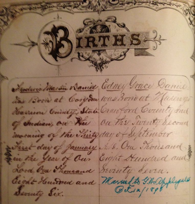 Daniel Ancestors 02 Sunday Nov 2014 Original size at 1194 × 1249 ≈ Comments Off on Fred_Grace_births_bible Births of Fred and Grace Daniel recorded in Dr. Wm Daniel’s family bible.