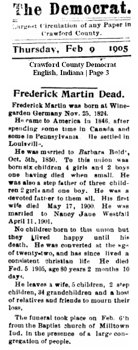Daniel Ancestors 06 Monday Oct 2014 Original size at 274 × 695 ≈ Comments Off on FredrickMartin_1824-1905_obit Fredrick Martin obit 1824-1905