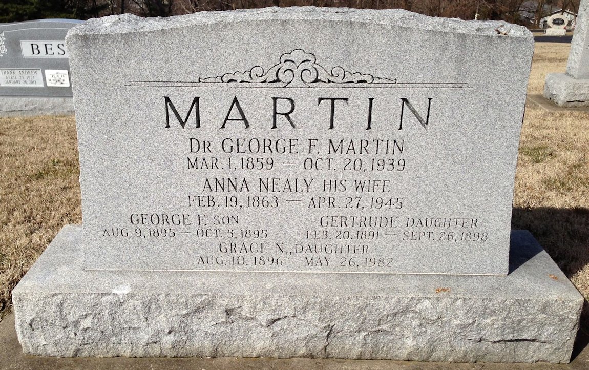 Daniel Ancestors 06 Monday Oct 2014 Original size at 1150 × 722 ≈ Comments Off on GeoFMartin_1859-1939_stone Dr. George F Martin headstone