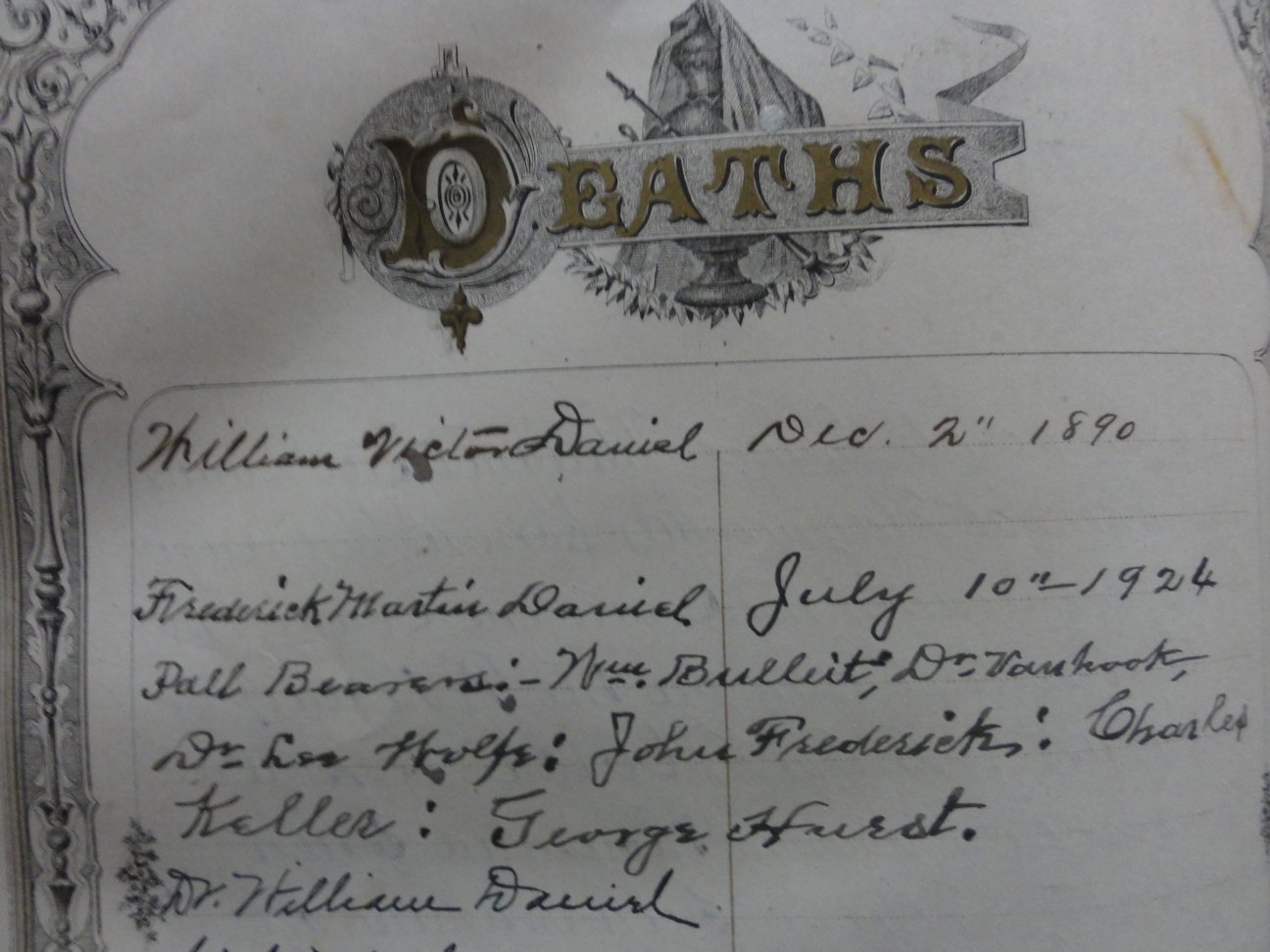 Daniel Ancestors 06 Monday Oct 2014 Original size at 1296 × 972 ≈ Comments Off on Willie_death_bibl_1890 Willie Daniel death record
