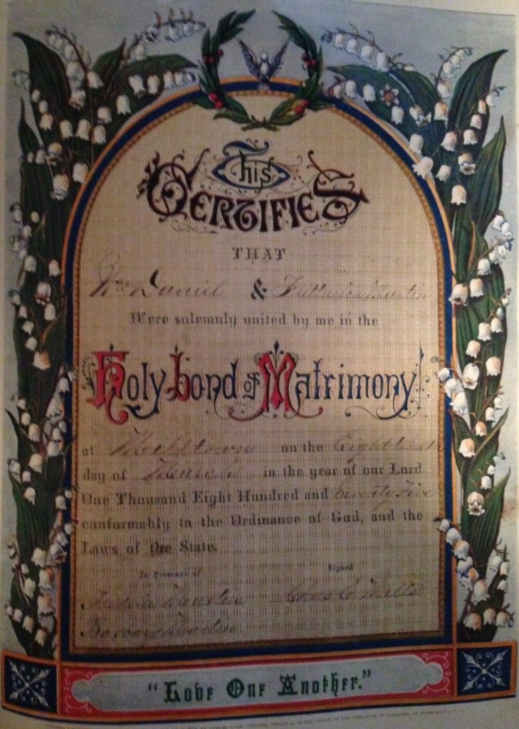 Daniel Ancestors 02 Sunday Nov 2014 Original size at 1101 × 1547 ≈ Comments Off on Wm_Fredrica_wed_03181875_bible Marriage of Dr. William Daniel and Fredrica Martin, recorded in Dr. Wm Daniel’s family bible