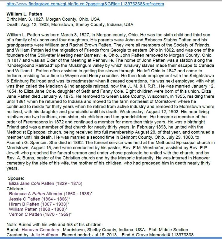 Patten Ancestors 19 Sunday Oct 2014 Original size at 912 × 982 ≈ Comments Off on WilliamLPatten_1827-1903_history William L Patten history (1827-1903