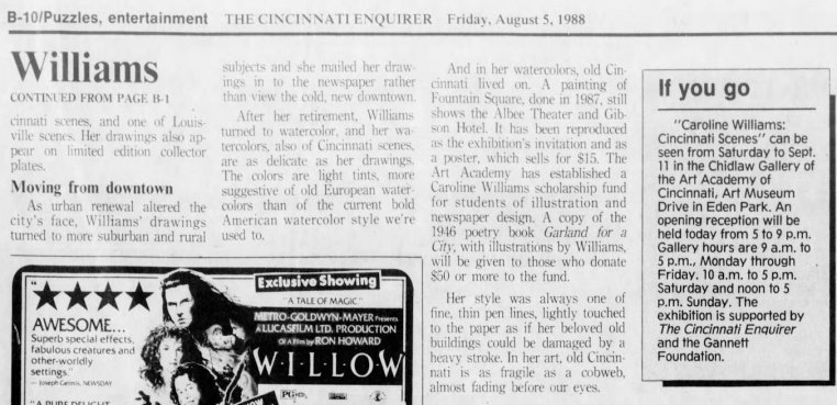 Misc Stories – maternal side 21 Friday Jul 2017 Original size at 1354 × 656 ≈ Comments Off on Caroline_Williams_CinciEnquirer_05Aug1988_2 Caroline Williams, Part 2, Cinci Enquirer, 05 Aug 1988