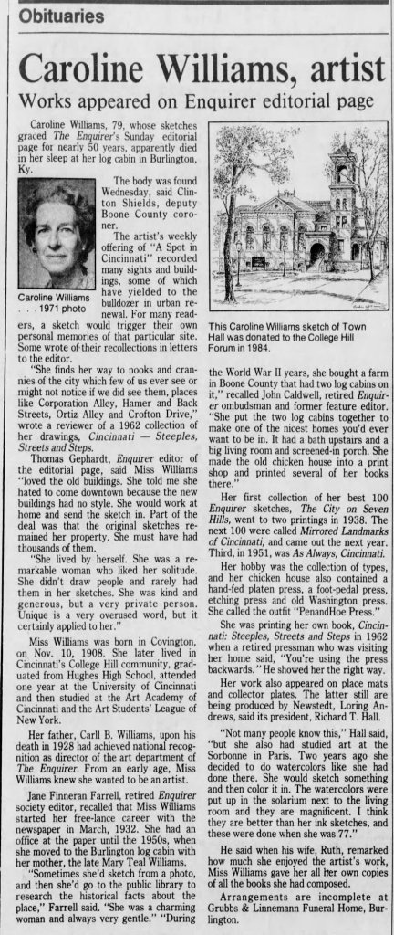 Misc Stories – maternal side 21 Friday Jul 2017 Original size at 876 × 2078 ≈ Comments Off on Caroline_Williams_obit_CinciEnquirer_10Mar1988 Caroline Williams obit, 10 Mar 1988