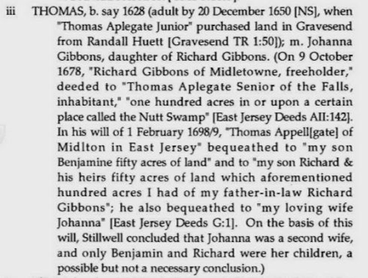 Applegate Line-paternal 24 Saturday Jun 2017 Original size at 735 × 556 ≈ Comments Off on Thomas_Applegate_Jr_will_1Feb1698-9_2 Will of Thomas Applegate Jr, 1698-99