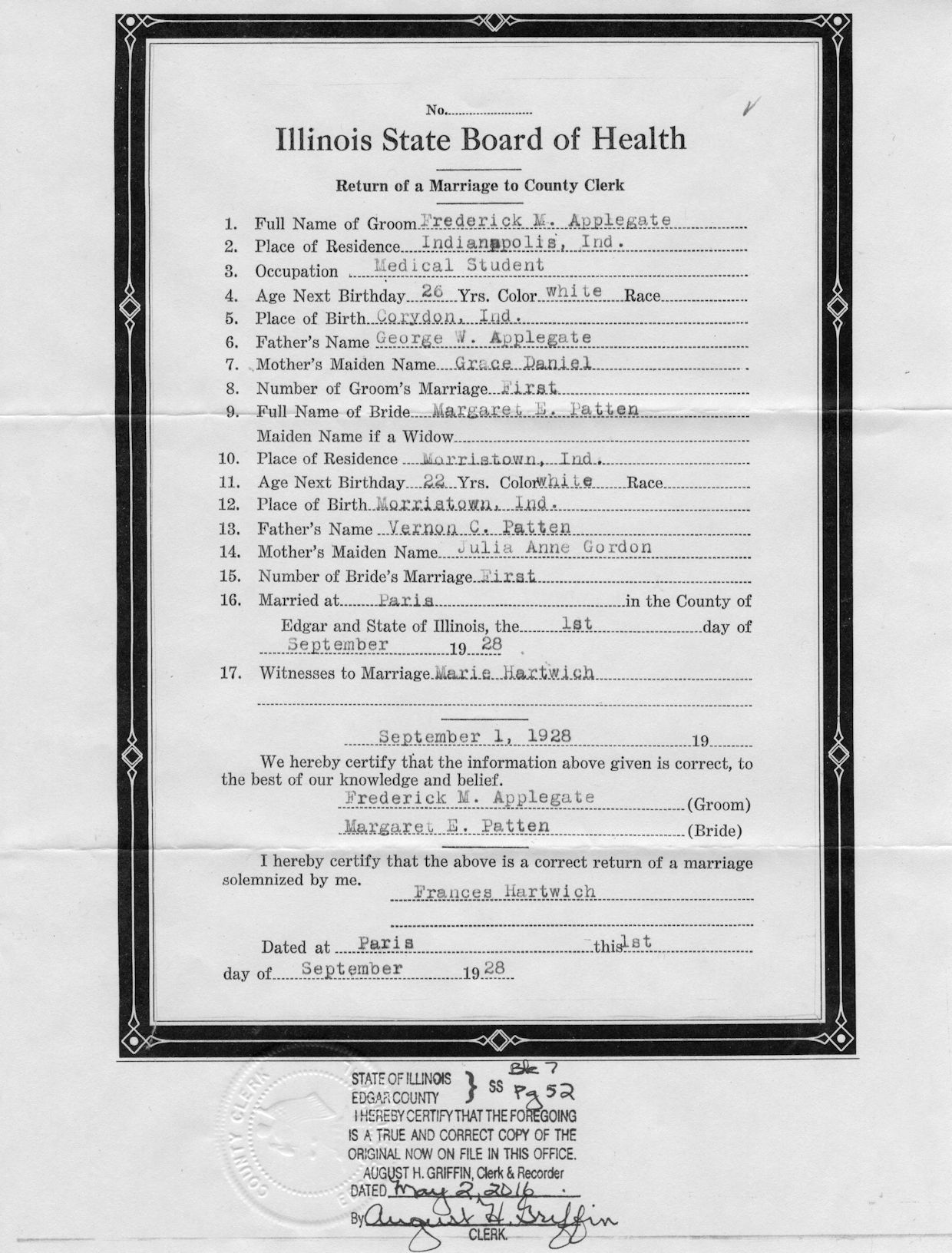 Patten Line-maternal 26 Monday Jun 2017 Original size at 1240 × 1632 ≈ Comments Off on 09011928_Ted_Maggie_mar_lic Ted and Maggie Patten Applegate marriage license, Sept. 1, 1928