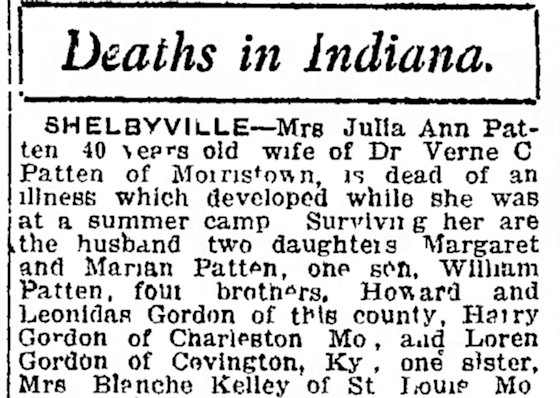 Patten Line-maternal 26 Monday Jun 2017 Original size at 560 × 398 ≈ Comments Off on Julia_Patten_death_IndStar_03Sep1921_ Julia Anne Gordon Patten obit, 1921
