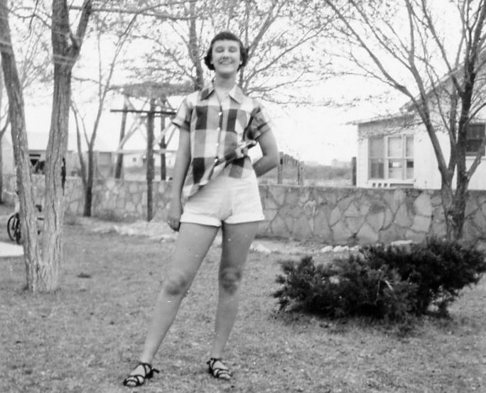 Ann 23 Tuesday Sep 2014 Original size at 684 × 554 ≈ Comments Off on Ann_backyard_1950 Ann in Monahans, 1950