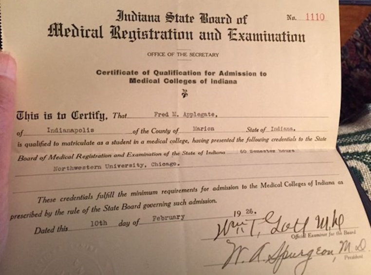 Ted, Maggie & the Girls 20 Wednesday Apr 2016 Original size at 894 × 664 ≈ Comments Off on Ted_IndMedExam_02101926 Ted’s certificate to allow him to enter Indiana medical schools, 1926